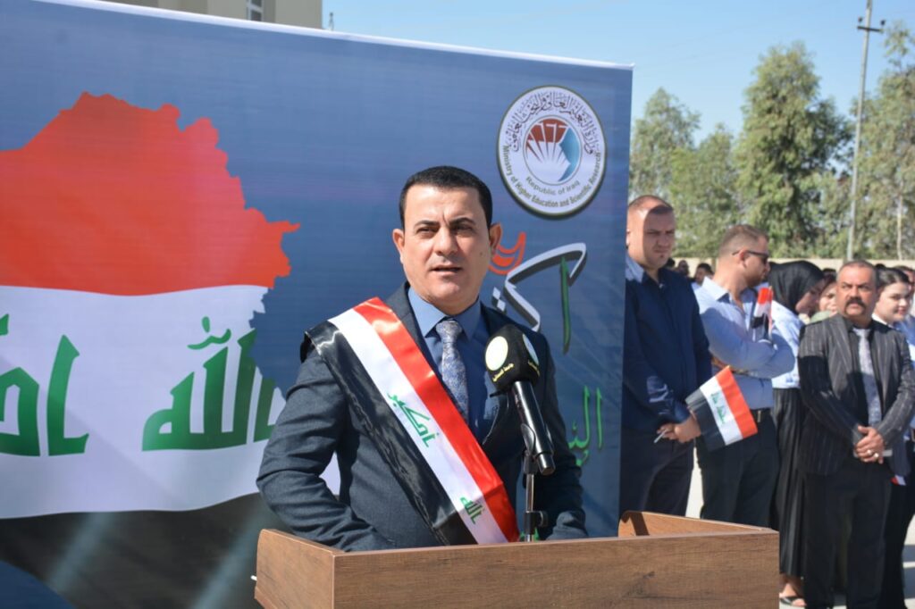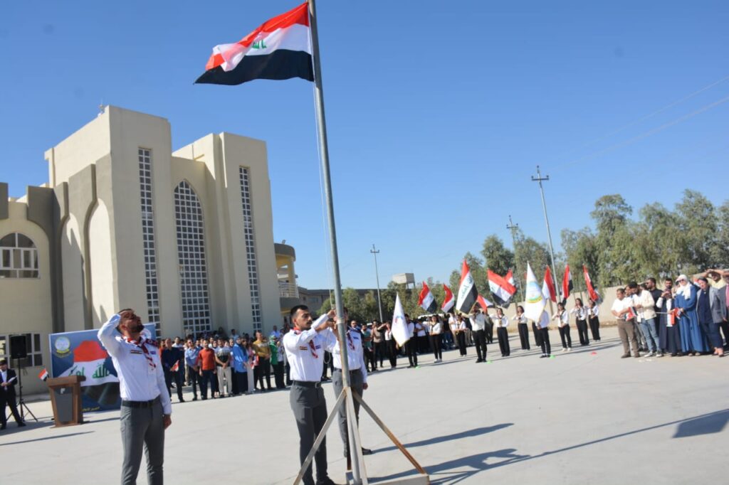 شاركت كلية التربية للعلوم الصرفة في جامعة الحمدانية، اليوم الأحد الموافق 5 تشرين الأول 2025، في احتفالية الجامعة بمناسبة اليوم الوطني العراقي، التي أُقيمت بحضور رئيس الجامعة الأستاذ الدكتور نشأت مبارك صليوا، والمساعد العلمي، وعمداء الكليات، والتدريسيين، والطلبة والموظفين.وجاءت مشاركة الكلية تعبيرًا عن اعتزازها بهذه المناسبة الوطنية العزيزة، التي تُجسّد قيم الانتماء والمحبة بين أبناء الوطن، وتُرسّخ روح المواطنة والمسؤولية لدى طلبتها.وتُؤكد الكلية من خلال مشاركتها حرصها الدائم على التفاعل مع المناسبات الوطنية التي تُعزّز الهوية العراقية، وتُسهم في غرس القيم الإنسانية في نفوس طلبتها ومنتسبيها، مؤكدةً أنّ اليوم الوطني العراقي يُعدّ مناسبةً لاستذكار تضحيات أبناء العراق وسعيهم الدؤوب لبناء وطنٍ مزدهرٍ يسوده الأمن والرخاء.