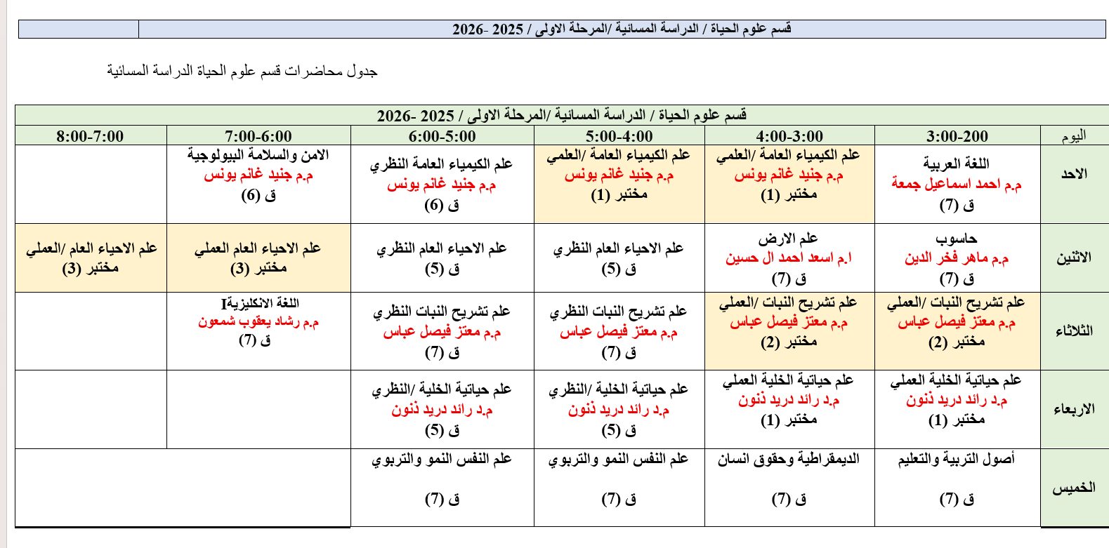 جداول المحاضرات