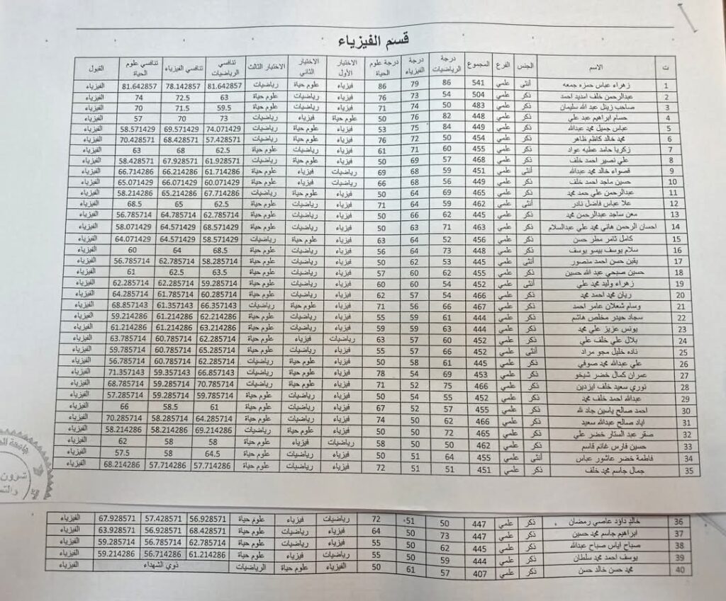 The College of Education for Pure Sciences at Al-Hamdaniya University, through the Registration Division for Morning Studies for the 2025–2026 academic year, is pleased to announce the release of the Central Admission Results for the students whose names are listed below, distributed according to their respective academic departments.All admitted students are kindly requested to visit their assigned departments to complete the registration procedures and commence their studies.