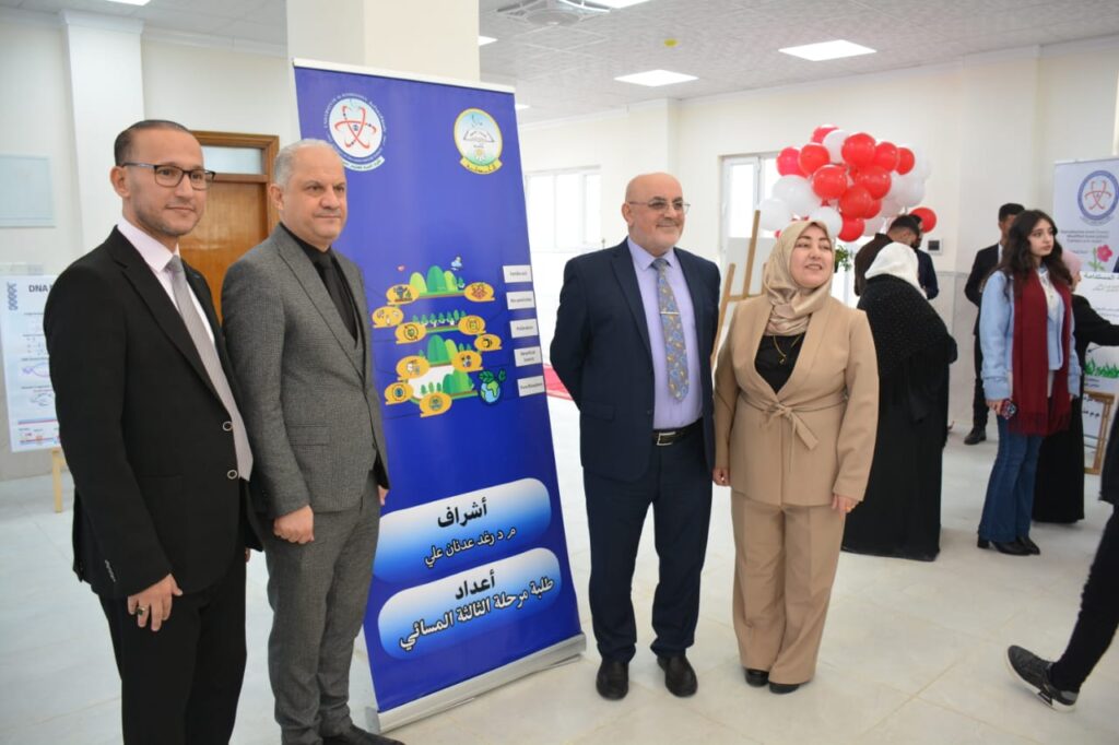 The exhibition was attended by the President of the University, Prof. Dr. Nashat Mubarak Saliwa, the Dean of the College, Asst. Prof. Dr. Riyadh Mubarak Abdullah, along with their deputies. They commended the faculty members for the scientific outputs presented, which reflect the college’s standards and its role in promoting research, experimentation, and development within the university environment.