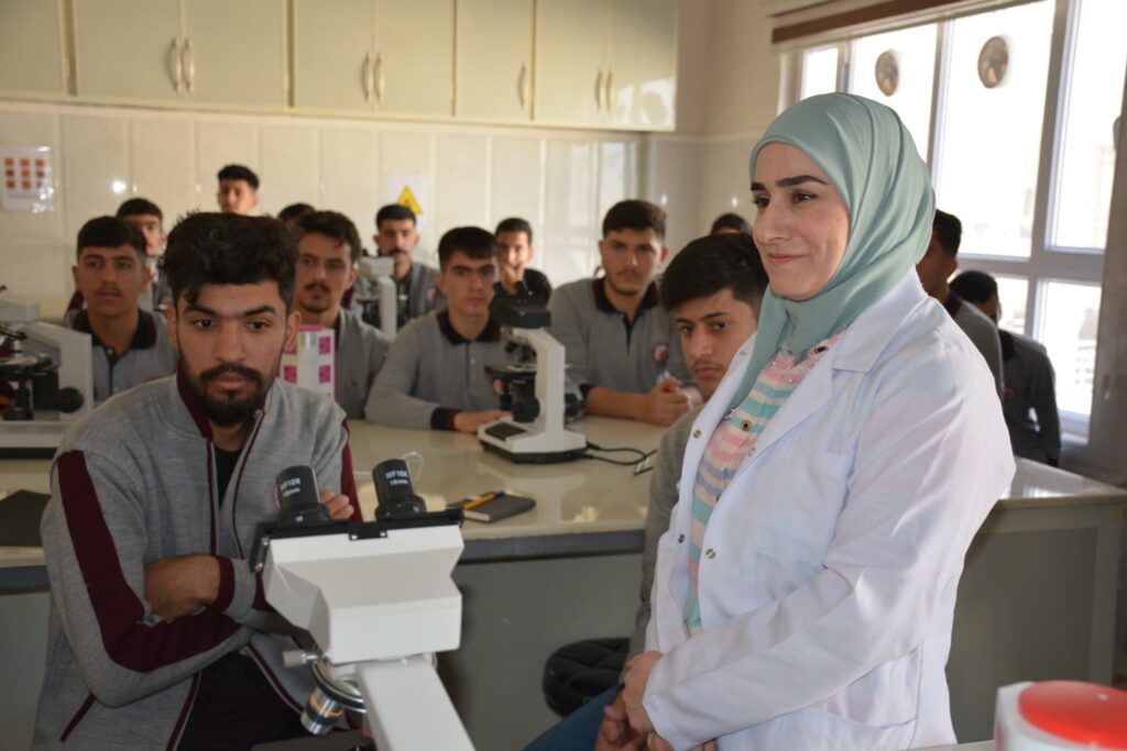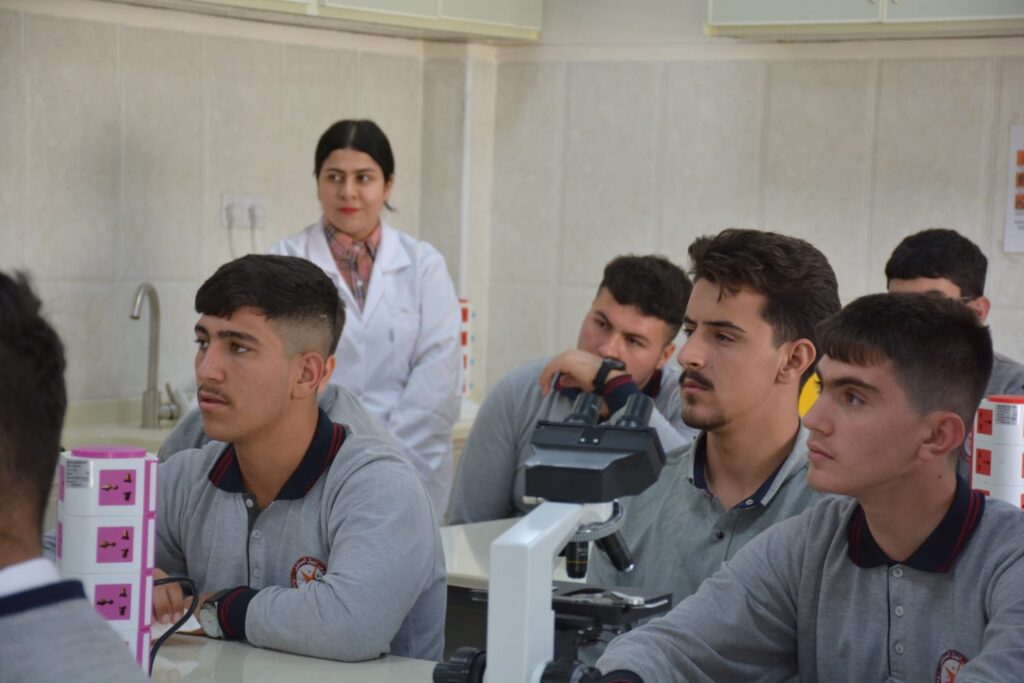 As part of the framework of scientific and educational cooperation between the University of Al-Hamdaniya and educational institutions, a delegation from Al-Ajyal Private High School visited the College of Education for Pure Sciences, accompanied by several teachers and students, to gain insight into the educational environment and scientific experiments conducted in the Department of Biology.
