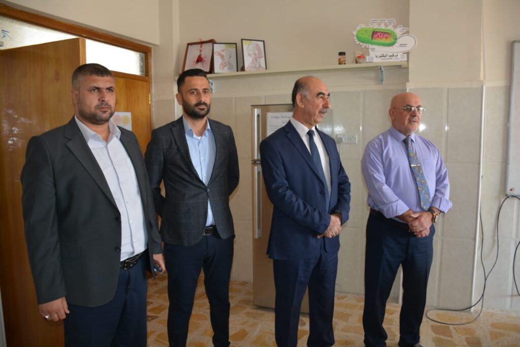 The delegation was received by Assistant Professor Dr. Riyadh Mubarak Abdullah, the Dean of the College, along with the Scientific Associate Dean and a number of faculty members from the Department of Biology. The visitors were given a guided tour of the department’s laboratories, during which comprehensive explanations were provided regarding the nature of the scientific experiments and the modern techniques employed in teaching and research.