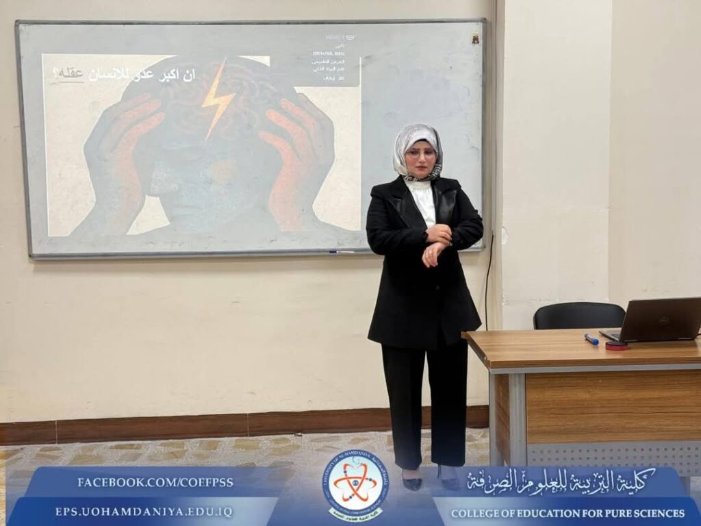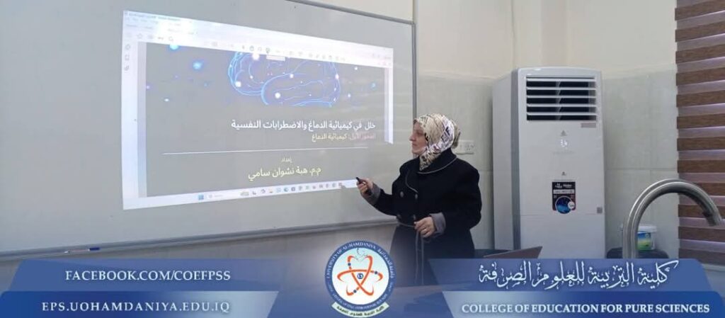 Under the patronage of the President of Al‑Hamdaniya University, Prof. Dr. Nashaat Mubarak Sliwa, and under the supervision of the Dean of the College of Education for Pure Sciences, Asst. Prof. Dr. Riyadh Mubarak Abdullah, the College of Education for Pure Sciences participated in a scientific course entitled “Imbalance in Brain Chemistry and Psychological Disorders.”The course was delivered by: