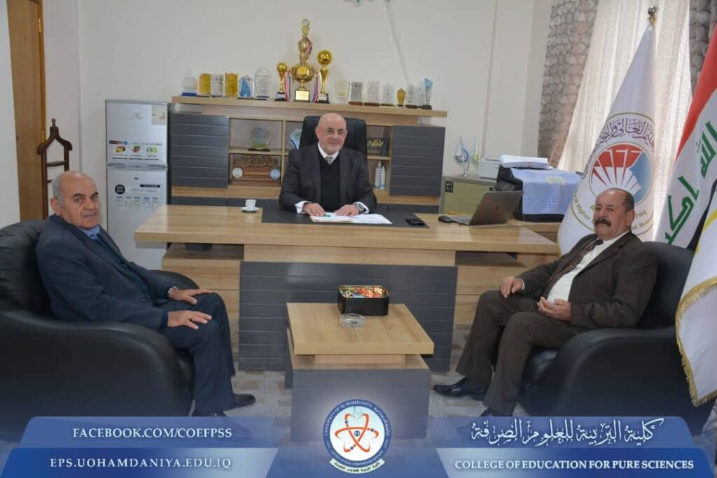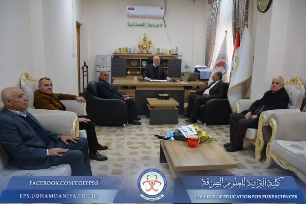 The Dean of the College of Education for Pure Sciences, Asst. Prof. Dr. Riyadh Mubarak Abdullah, received in his office on Wednesday, 14 January 2026, the Head of the Qaraqosh Council of Notables, Mr. Saad Majeed Zaki, during a visit aimed at strengthening cooperation and communication between the academic institution and the local community.