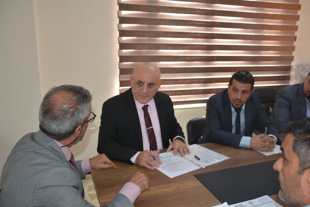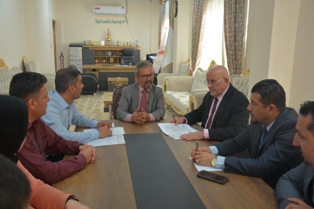 A meeting was held at the Presidency of the University of Al-Hamdaniya, attended by the Dean of the College of Education for Pure Sciences as a representative of the college, along with representatives from the Department of Studies and Planning at the university presidency, the Department of Arabic Language, the Department of English Language, the Department of Computer Science, and the College of Law. The purpose of the meeting was to deliberate and reach a consensus on a mechanism for unifying secondary-level curricula within the college.