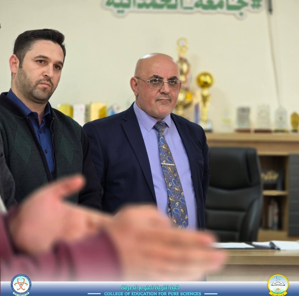 The President of Al-Hamdaniya University, Professor Dr. Nashat Mubarak Sliwa, visited the Deanship of the College of Education for Pure Sciences on Monday, April 20, 2026, as part of his field follow-up on the progress of academic and administrative work across the university’s colleges.He was received by the Dean of the College, Assistant Professor Dr. Riyadh Mubarak Abdullah. During the visit, an overview was presented on the current status of the college and its level of performance, in addition to discussing a number of issues related to the development of the educational and research processes.During his meeting with the college staff, the University President emphasized the importance of adhering to ministerial and university directives, and of working in a spirit of teamwork to enhance both academic and service performance, in alignment with the university’s vision of achieving academic excellence. #Media_and_Government_Communication_Division #College_of_Education_for_Pure_Sciences