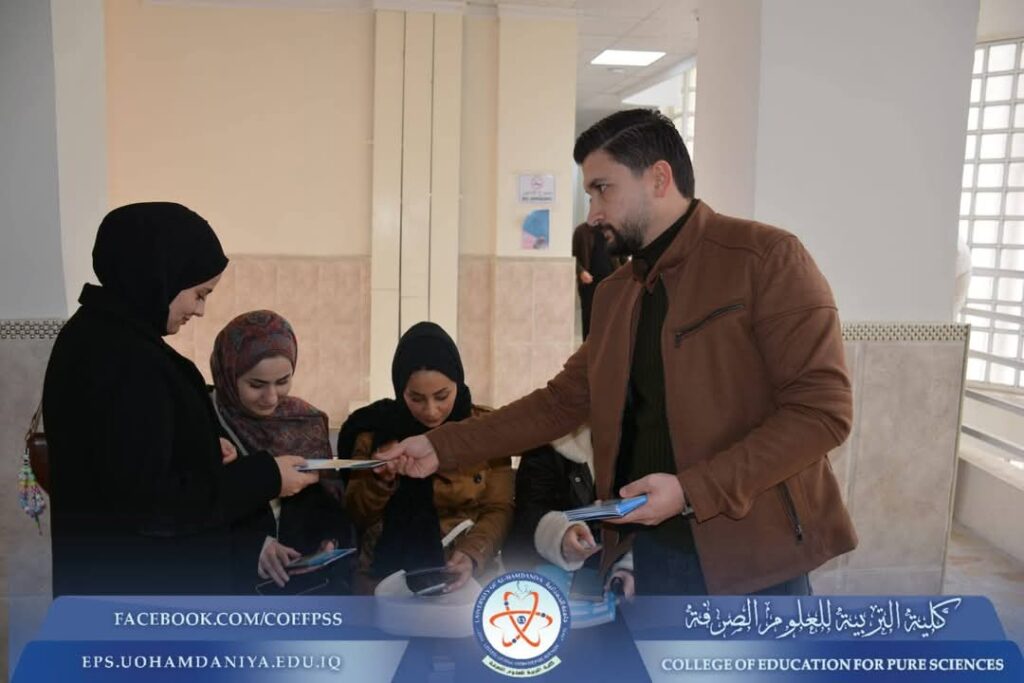 Under the guidance of the Ministry of Higher Education and Scientific Research, and under the patronage of the President of the University of Al-Hamdaniya, Prof. Dr. Nashat Mubarak Sliwa, and the supervision of the Dean of the College of Education for Pure Sciences, Asst. Prof. Dr. Riyadh Mubarak Abdullah, the Head of the Technological Incubator Unit at the College, Mr. Karam Jirjis Behnam, distributed informational posters introducing Entrepreneurship and Creativity Week, scheduled to take place from 1 to 5 February 2026. This initiative aims to promote a culture of entrepreneurship and innovation among students and encourage them to develop their creative ideas.The posters included information on the key activities and workshops planned for the week, in addition to highlighting success stories of some graduates and innovators from among the College’s students. This is expected to contribute to motivating students to actively participate and engage in entrepreneurial and technological activities.