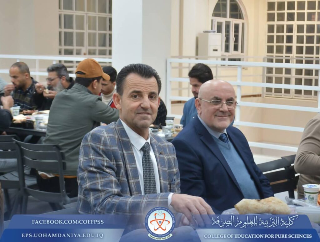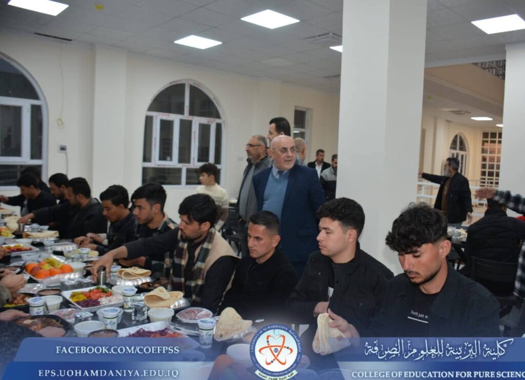 Under the patronage and direct supervision of the President of Al-Hamdaniya University, Prof. Dr. Nashaat Mubarak Saliwa, the Dean of the College of Education for Pure Sciences, Asst. Prof. Dr. Riyadh Mubarak Abdullah, participated—alongside the University President and the deans of the university’s colleges—in a collective Iftar banquet organized by Al-Hamdaniya University for students residing in the university dormitories on Tuesday, March 10, 2026.This initiative came within the framework of strengthening the spirit of solidarity and communication with students during the holy month of Ramadan. The event included the distribution of Ramadan food baskets to dormitory students in support of them and in sharing the blessings and atmosphere of the holy month. Staff members from the College of Education for Pure Sciences also took part in organizing the event and contributing to its success. Media and Government Communication Division College of Education for Pure Sciences