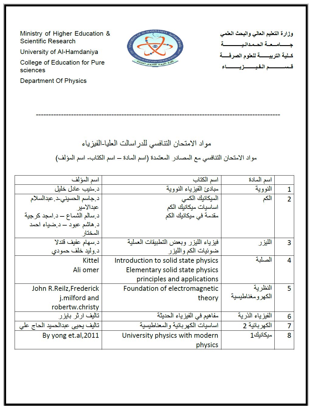 قسم الفيزياء